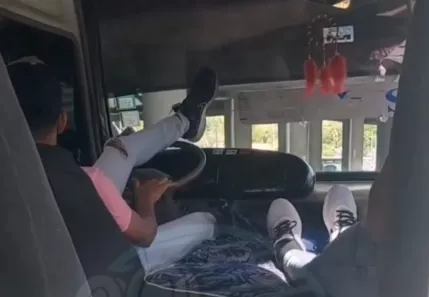 Busero hace gracias con el timón; iba con pasajeros (Video)
