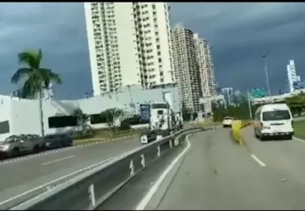 Busero hace giro indebido y se vuelca en el puente de las Américas (Video)