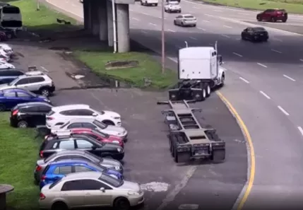 Busero hace giro indebido y se vuelca en el puente de las Américas (Video)