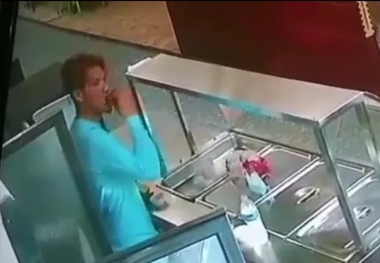 Hurta varios artículos de un local y luego llena su panza (Video)