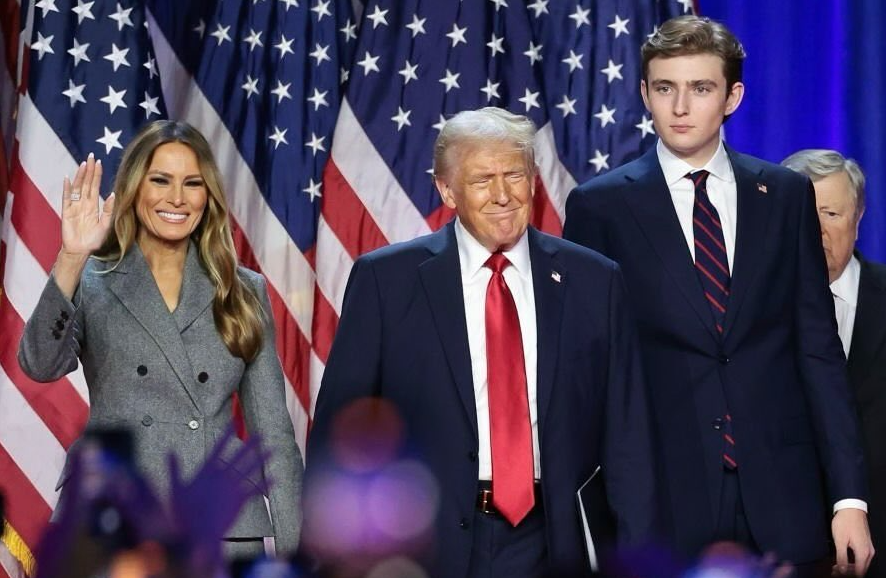 En el acto, en el Centro de Convenciones del Condado de Palm Beach, Florida, donde Trump declaró una "increíble victoria", apareció junto a su esposa, Melania, y su hijo menor, Barron, quien llamó la atención de los presentes y en las redes sociales, con su imponente estatura de 2.06 metros, superando a todos los miembros de su familia.