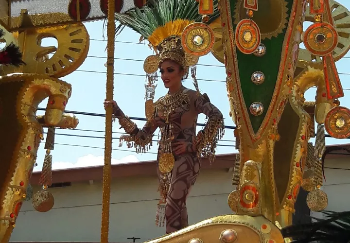 Una enorme cara de Vasco Núñez de Balboa, piezas precolombinas de color oro y Ana Victoria representando a la india Anayansi fueron parte de la alegoría hermosa presentada por Calle Arriba de Las Tablas, en el Martes de Carnaval.