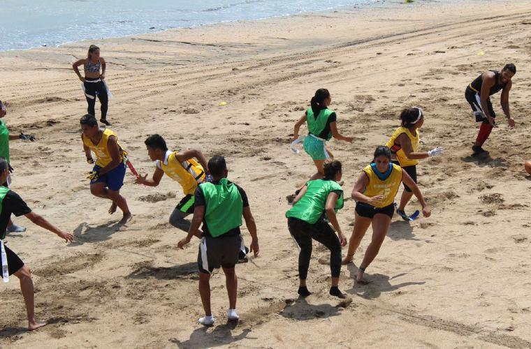 El cantante RD Maravilla decidió organizar una exhibición de flag football americano en la modalidad playa.