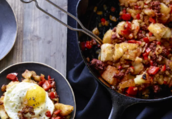 “Hash Browns” de yuca con chorizo