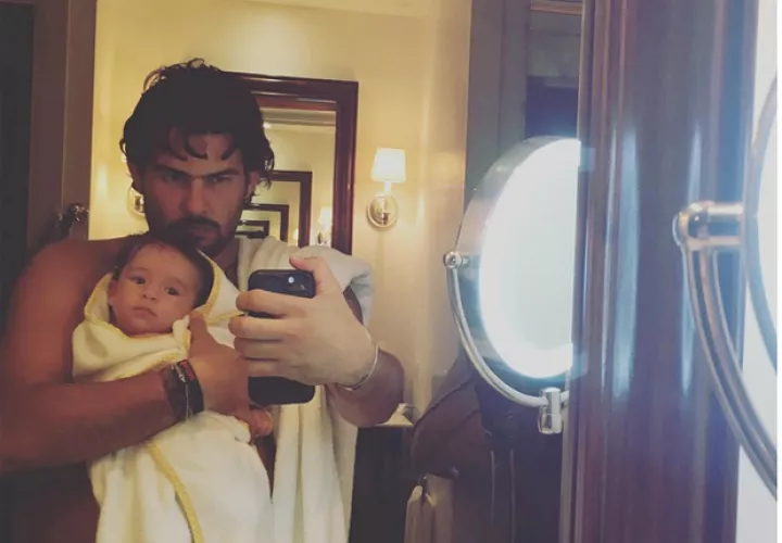 El orgulloso padre acompañó la instántanea con este pie de foto: "Cuando salimos de bañarnos #limpiezitos #amor #puro #LOVE #Amore #feliz #baño #QueDiosBendiga #espejeando #veranito #calorcito".