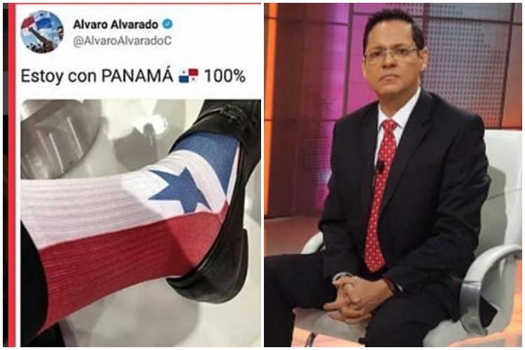 El pasado lunes, con el debut de Panamá en el mundial, el periodista Álvaro Alvarado lució unas medias con el diseño de la bandera, expresando que apoyaba a Panamá al 100%.