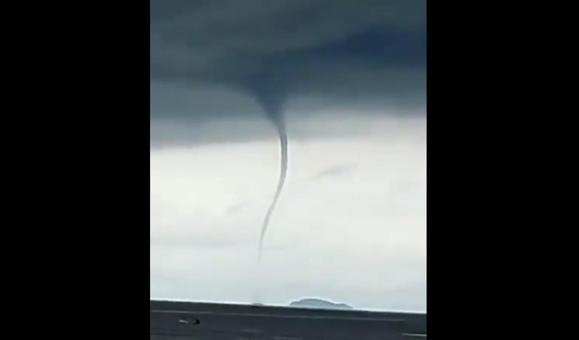En las imágenes se aprecia un embudo descendente que parece que iba a tocar la superficie próxima a una pequeña isla.