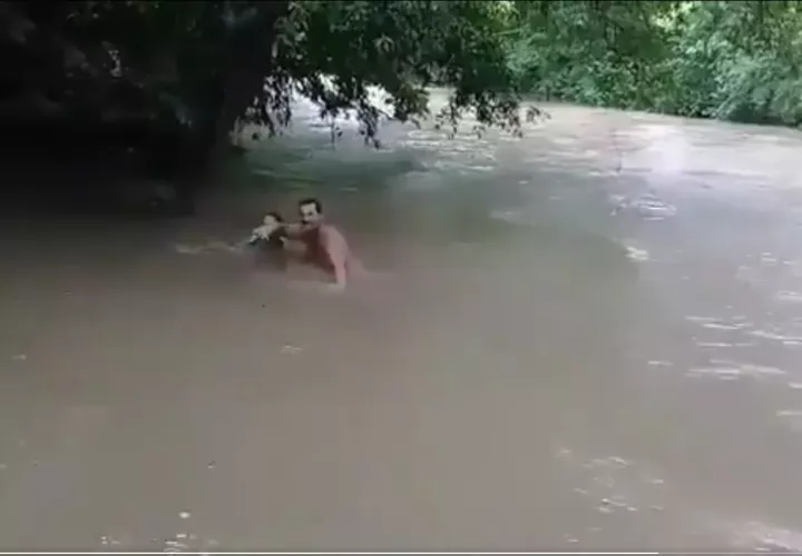 Residentes de Las Delicias Arriba, en Penonomé, denuncian que deben cruzar este río crecido nadando, debido a que no tienen puente.