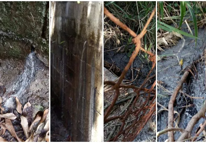 Los moradores indican que el agua negra se filtra por el murio de separación.