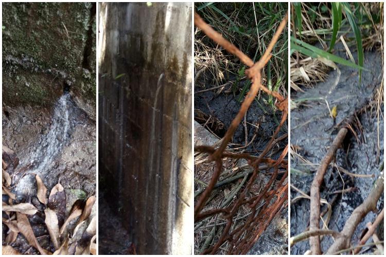 Los moradores indican que el agua negra se filtra por el murio de separación.