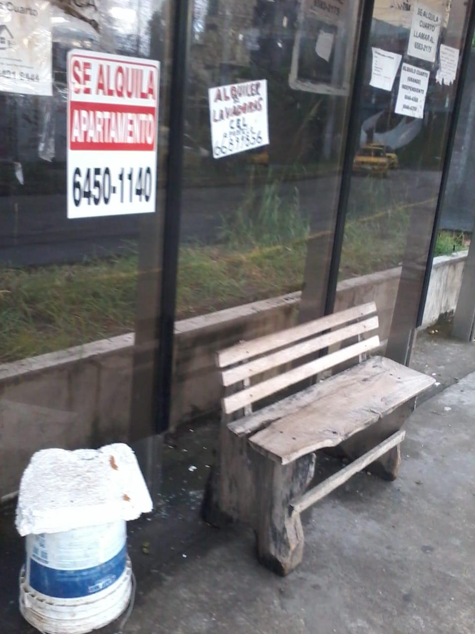 La modernización ha llevado a que las paradas tengan asientos de madera, como la que se encuentra frente a la D.G.I en la rotonda de la Roosevlt
