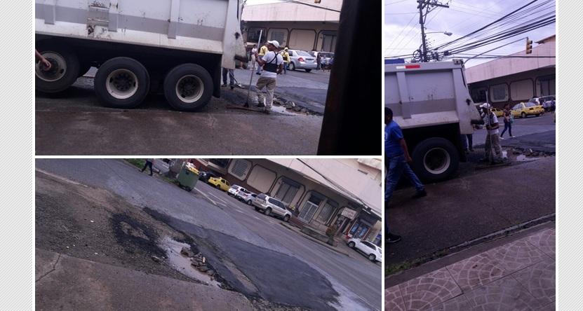 Funcionarios del Ministerio de Obras Públicas taparon solo una parte de los huecos de la calle en La Chorrera, dejando otra parte sin reparar.