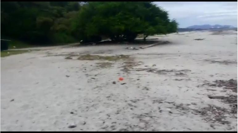 En un video, el denunciante muestra la playa llena de basura.